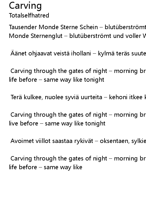 | Carving through the gates of night – morning breeze alive – never saw this life before – same way like tonight | |