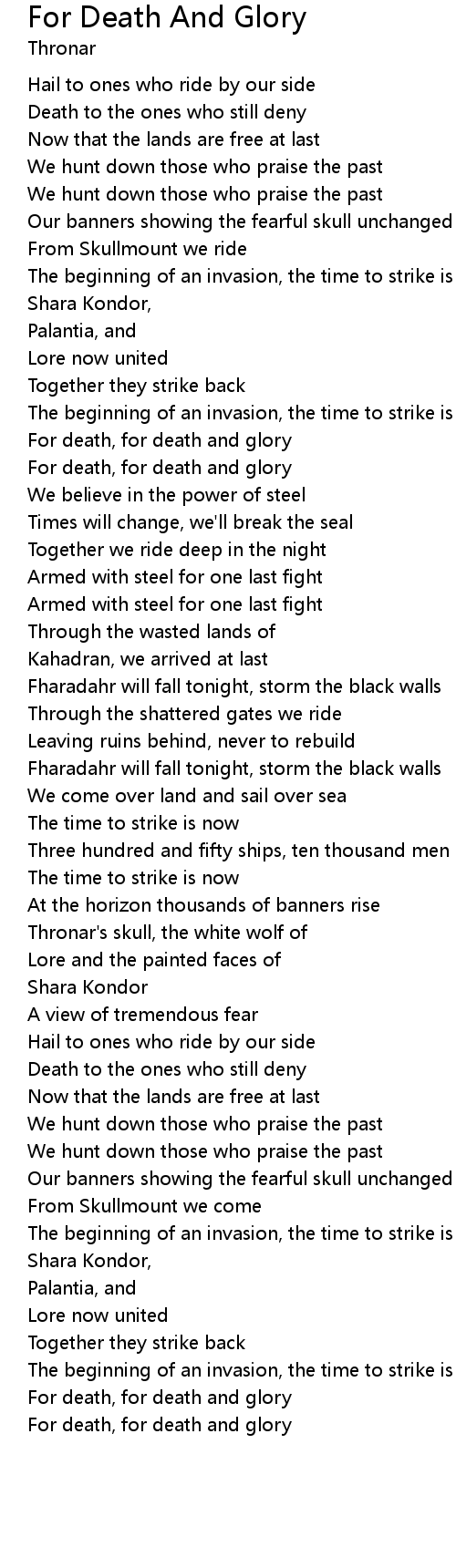 For death, for death and glory |