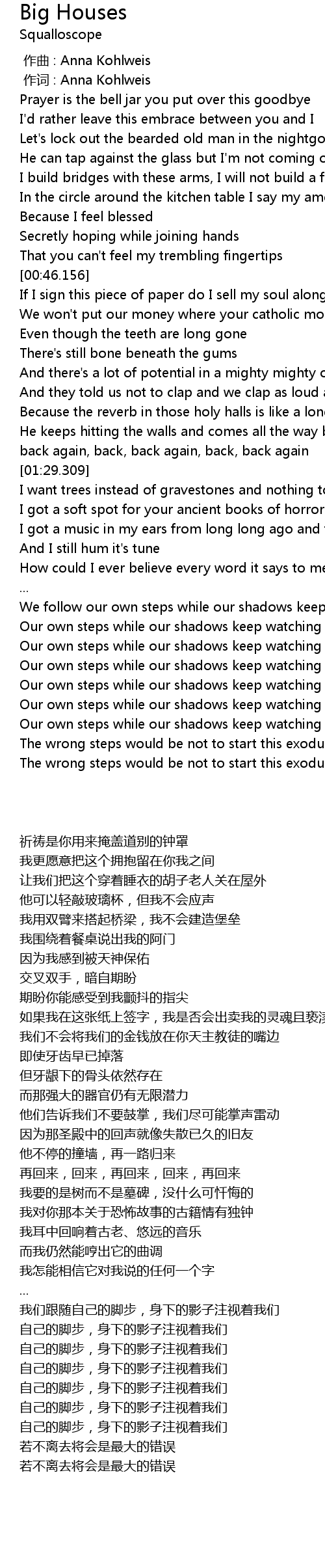 | [02:32.855] | Our own steps while our shadows keep watching us |