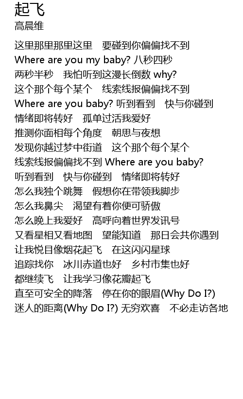 | Where are you baby? tīng dào kàn dào kuài yǔ nǐ pèng dào | |