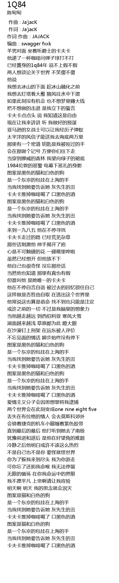 | [00:02.86] | 作词 作曲:JAJACK |