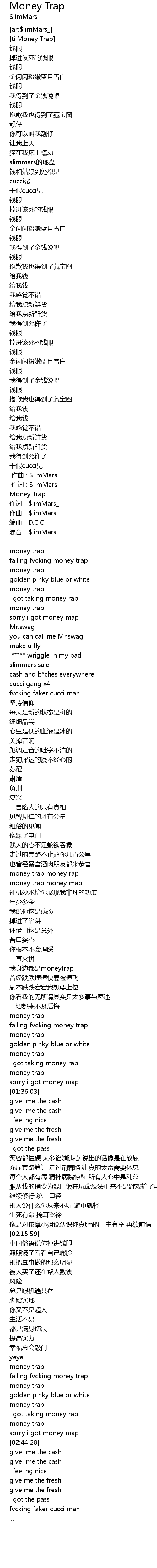 | [01:14.35] | wǒ shēn biān dōu shì moneytrap |