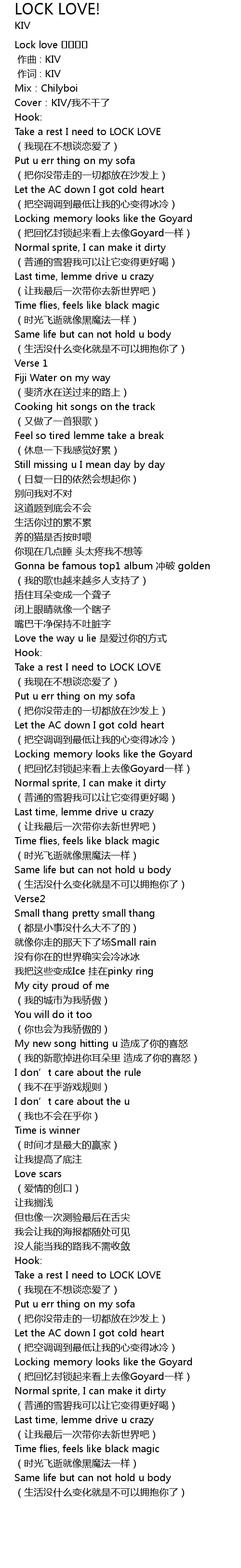 | [00:13.47] | Take a rest I need to LOCK LOVE |