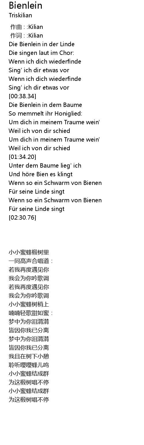 | 歌曲 | Bienlein |