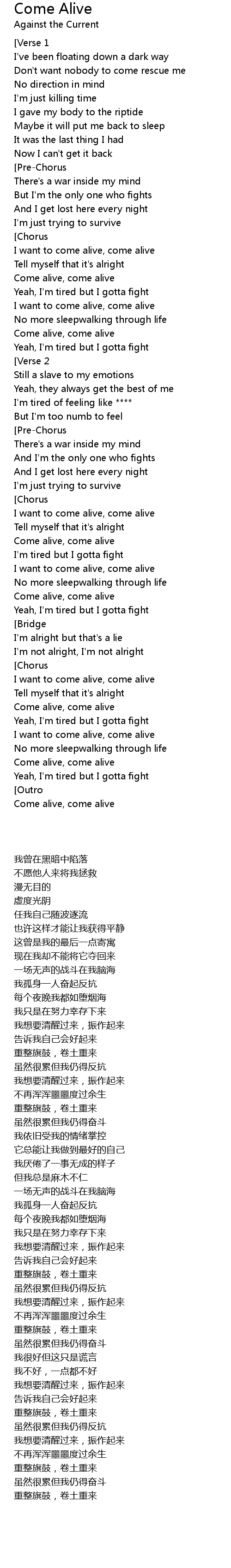 I want to come alive, come alive |