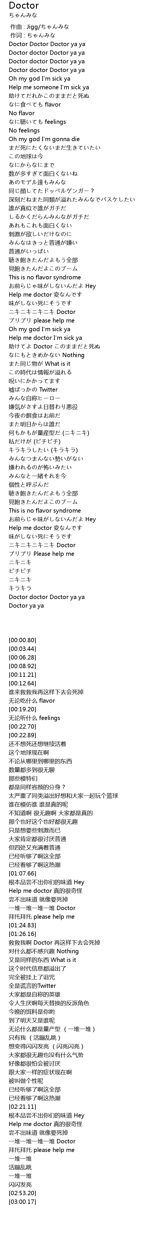 | [00:00.80] | Doctor Doctor Doctor ya ya |