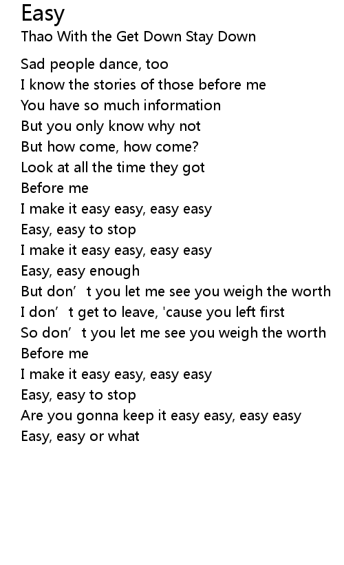 | Are you gonna keep it easy easy, easy easy | |