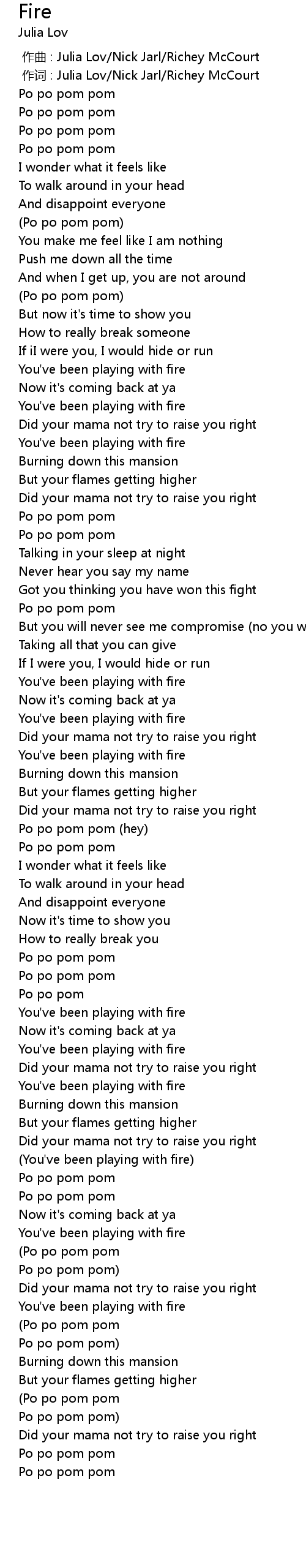 | [01:44.14] | You' ve been playing with fire |