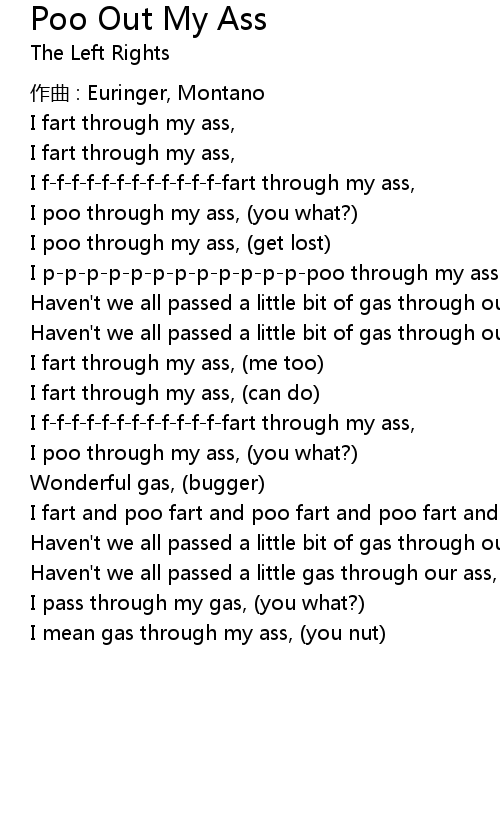 | I fart and poo fart and poo fart and poo fart and poo fart in my ass, | |