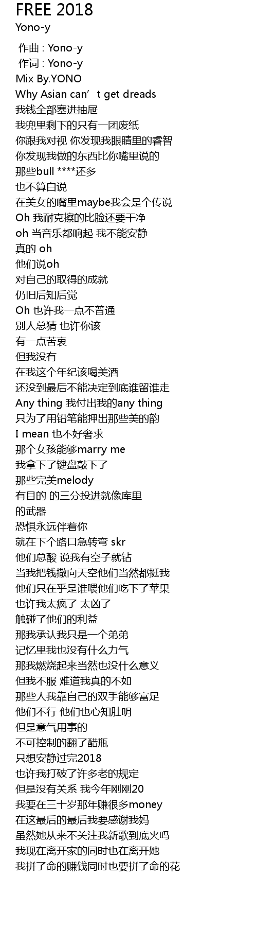 | [01:50.963] | zhǐ xiǎng ān jìng guò wán 2018 |