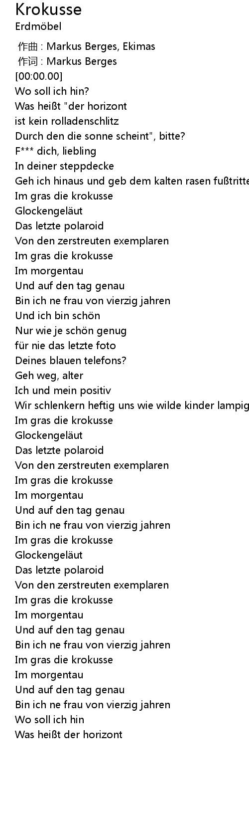 | [02:00.23] | Im gras die krokusse |