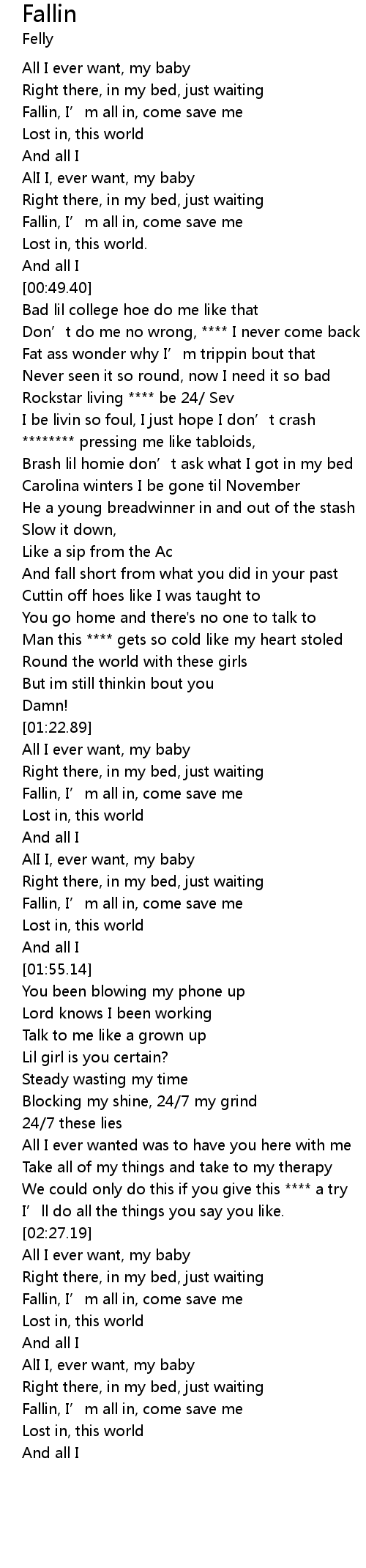 | [00:24.91] | Fallin, I’m all in, come save me |