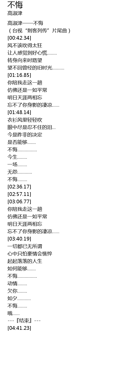| [00:00.00] | 高淑津——不悔 |