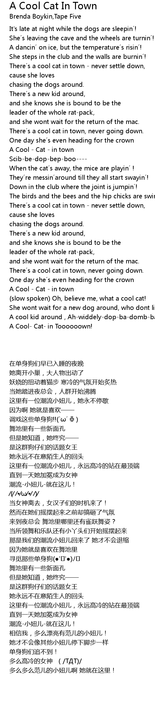| [03:31.04] | A Cool Cat in Toooooown! |