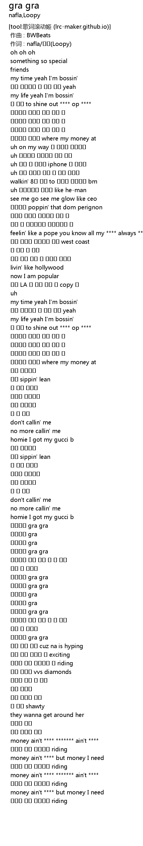| [03:01.407] | money ain't **** ******* ain't **** |