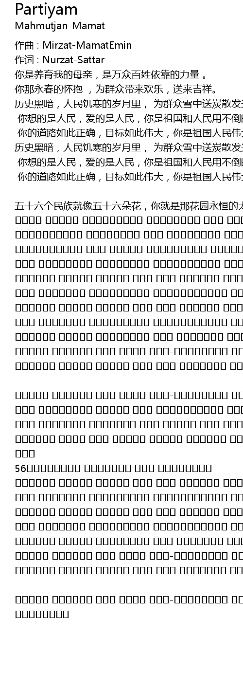 | مىنى بېقىپ ئۆستۈرگەن ئۆزئانام سەن پارتىيەم | |