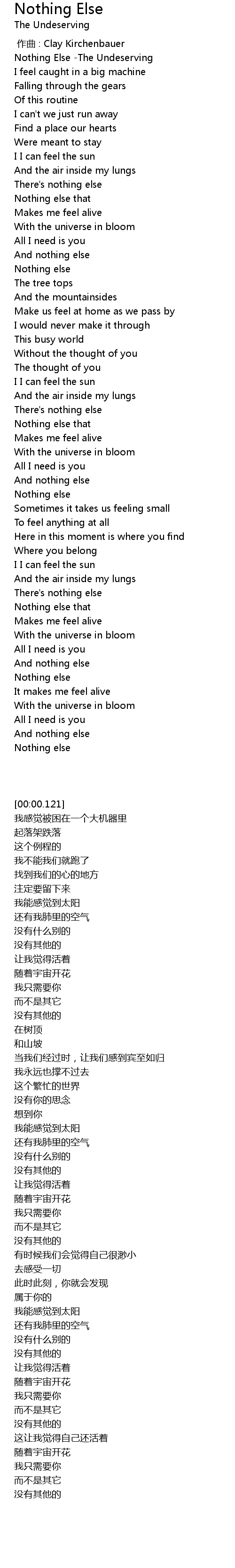 | [00:00.121] | Nothing Else -The Undeserving |