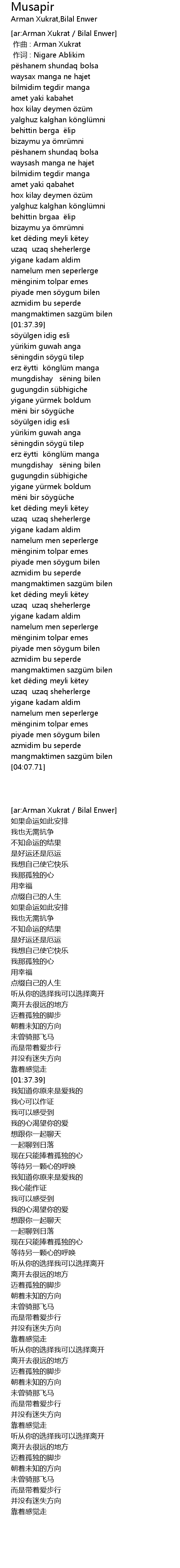 | [00:01.000] | 作词 : Nigare Ablikim |