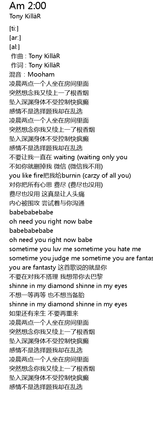 | [00:00.000] | zuo qu : Tony Killa R |