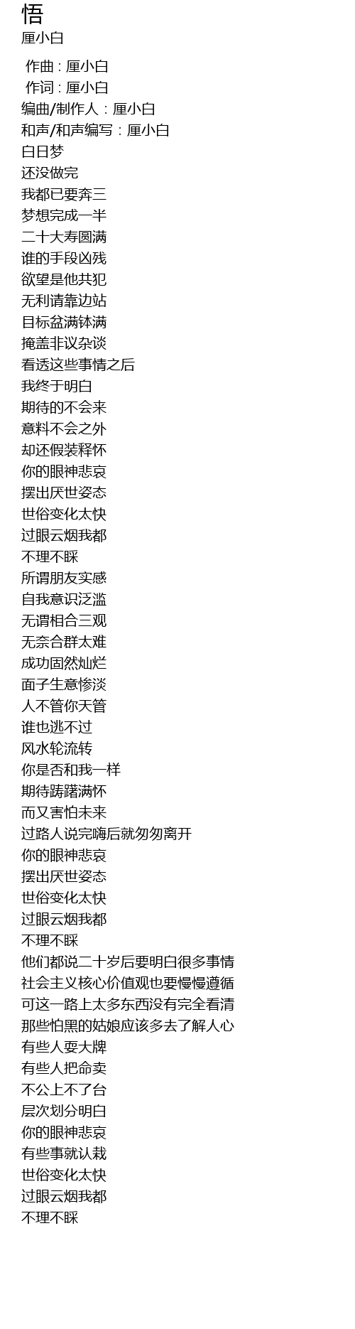 | [00:07.247] | 编曲/制作人:厘小白 |