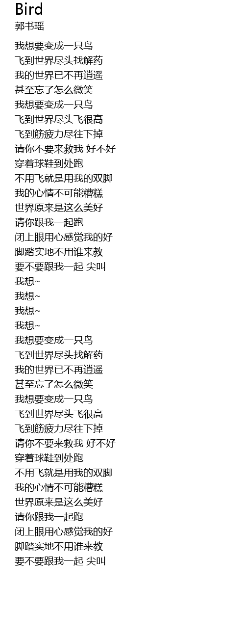 | [01:54.24] | 我想要变成一只鸟 |