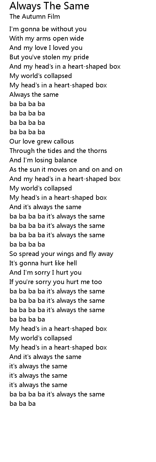 And my head's in a heart-shaped box |