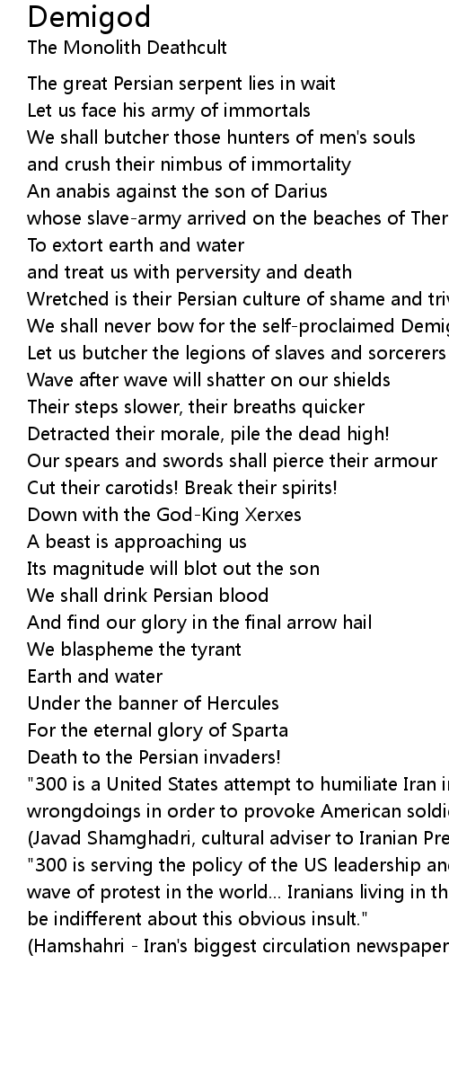 "300 is a United States attempt to humiliate Iran in order to compensate for its wrongdoings in order to provoke American soldiers and warmongers."