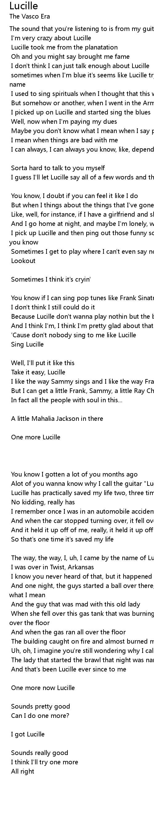 sometimes when I'm blue it's seems like Lucille trying to help me, calling my name