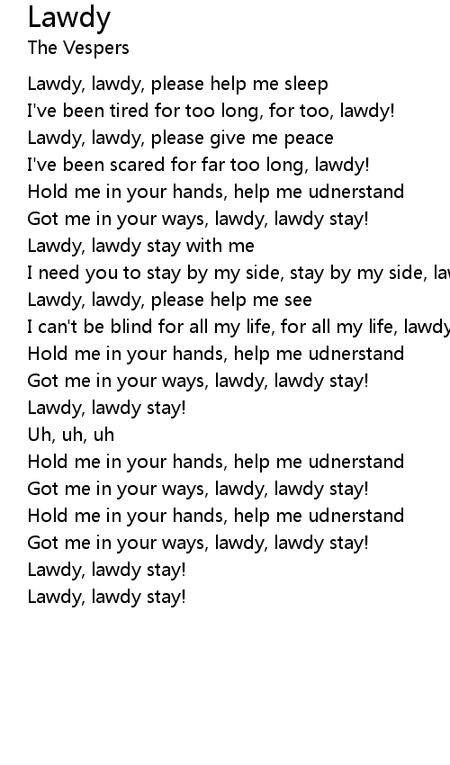 Lawdy, lawdy stay with me |