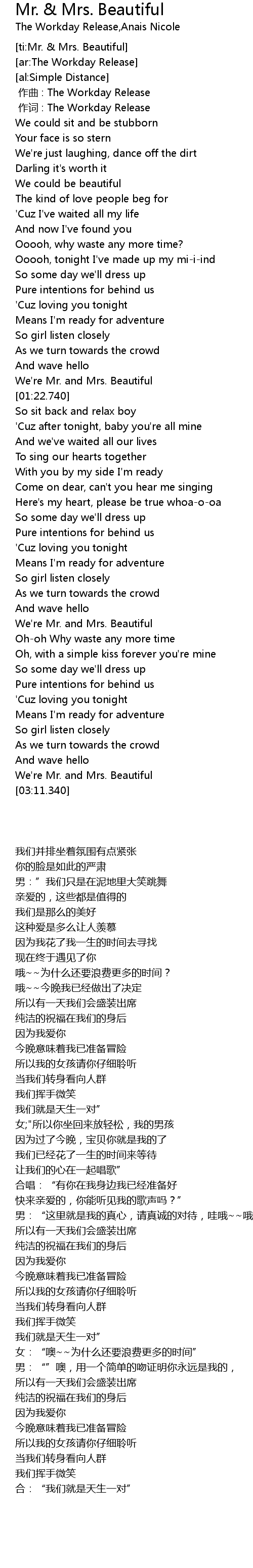| [03:05.300] | We're Mr. and Mrs. Beautiful |