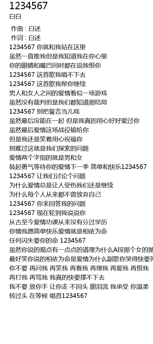 | [00:43.930] | 1234567 zhè shǒu gē wǒ chàng bù xià qù |