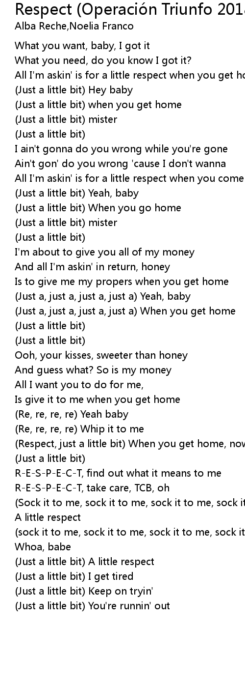 R-E-S-P-E-C-T, take care, TCB, oh |