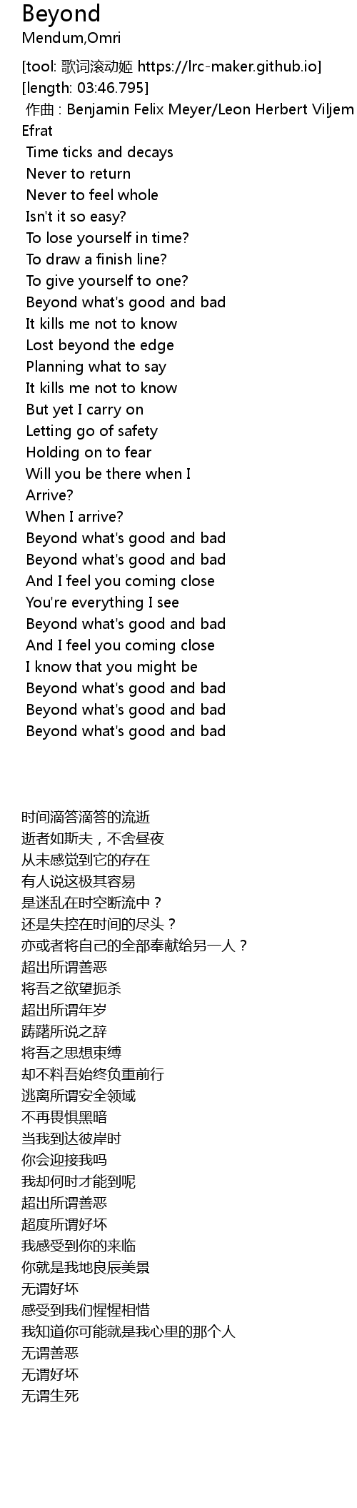| [00:00.000] | 作曲 : Benjamin Felix Meyer/Leon Herbert Viljem Mekschrat/Omri Efrat |