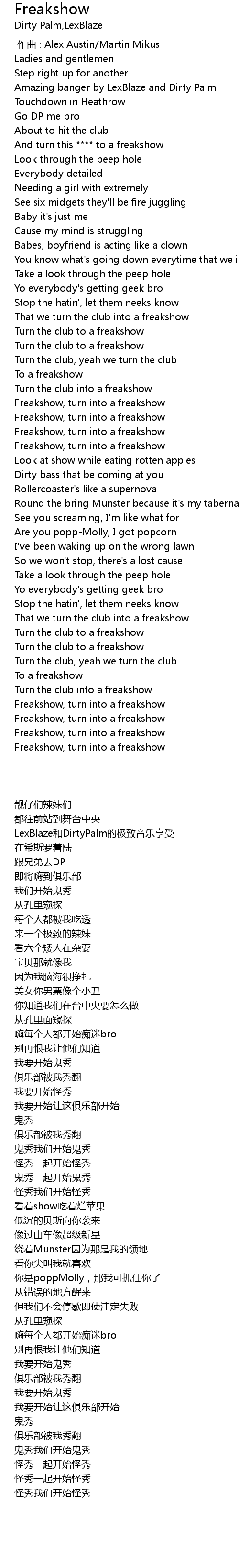 | [00:33.700] | Turn the club to a freakshow |