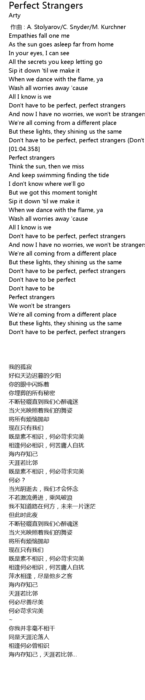 | [01:51.456] | Don' t have to be perfect, perfect strangers |
