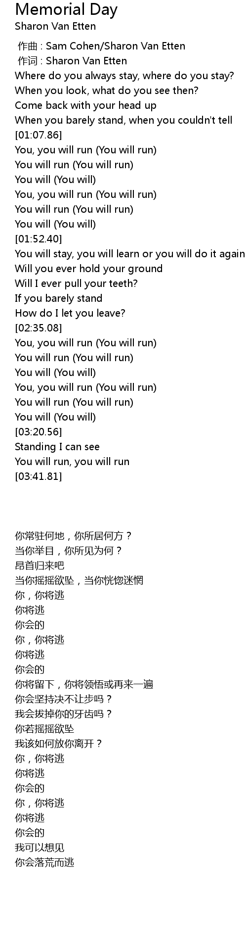 | 歌曲 | Memorial Day |