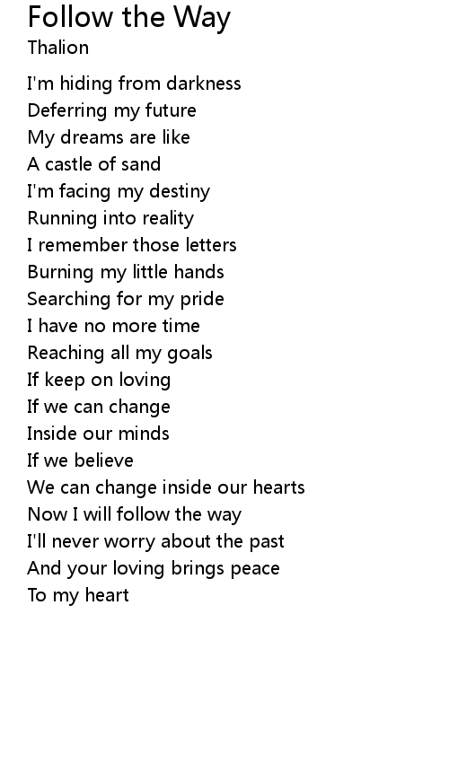 | Now I will follow the way | |