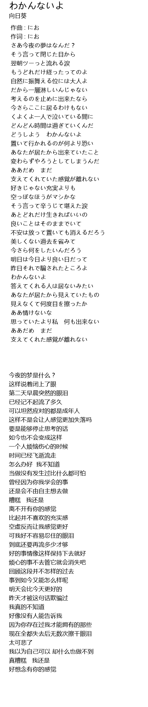 | [00:19.655] | 翌朝ツーっと流れる涙 |