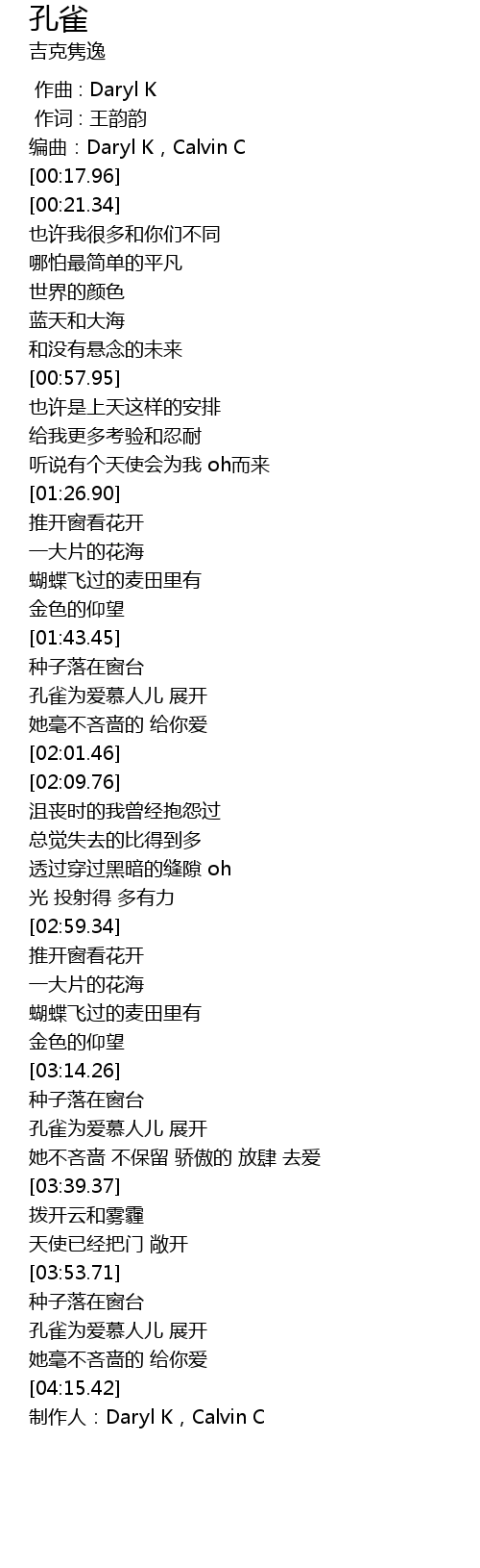 | [04:22.58] | 制作人:Daryl K,Calvin C |