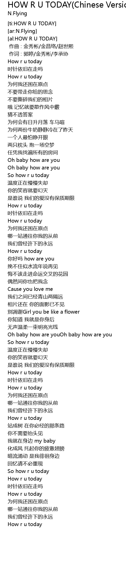 | 歌曲 | HOW R U TODAY(Chinese Version) |