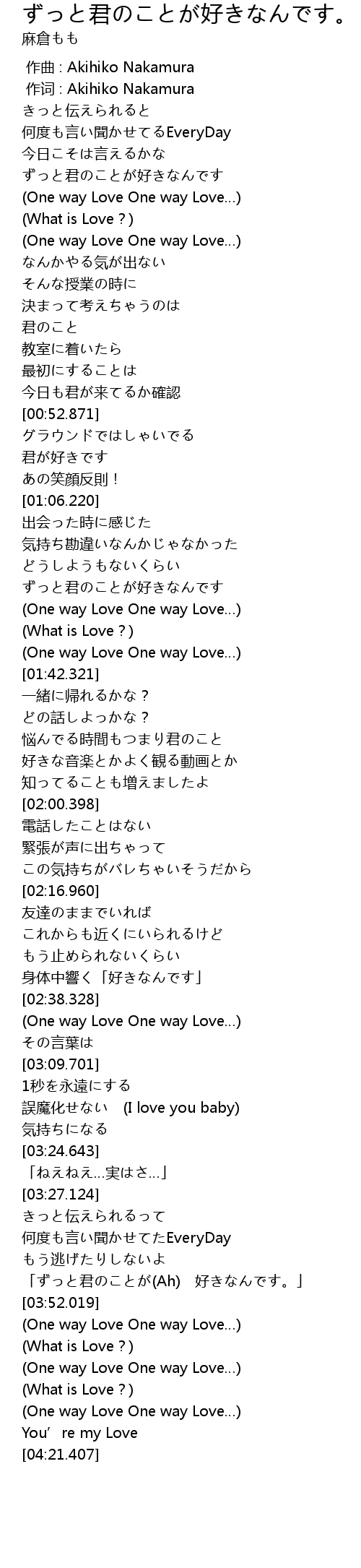 | [01:20.457] | ずっと君のことが好きなんです |