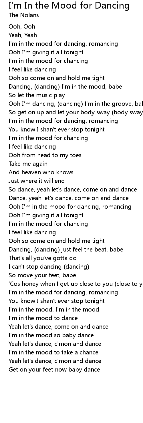 I'm in the mood to dance |