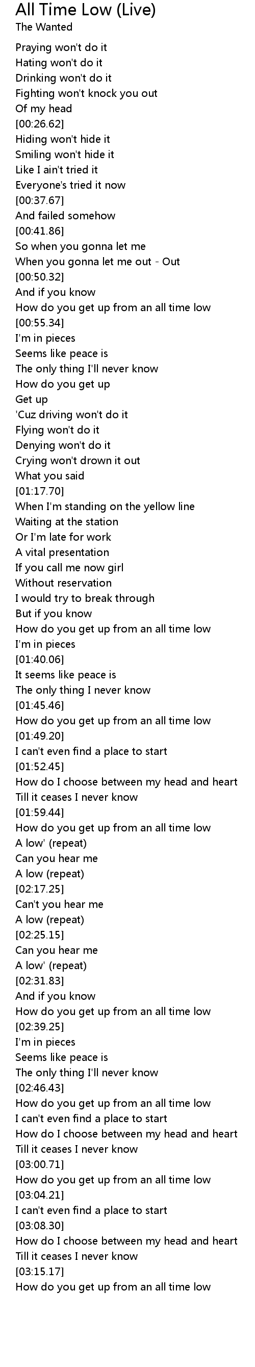 How do you get up from an all time low |
