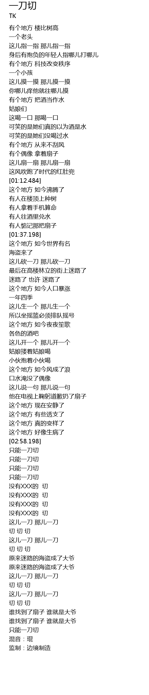 | [03:35.924] | 这儿一刀 那儿一刀 |