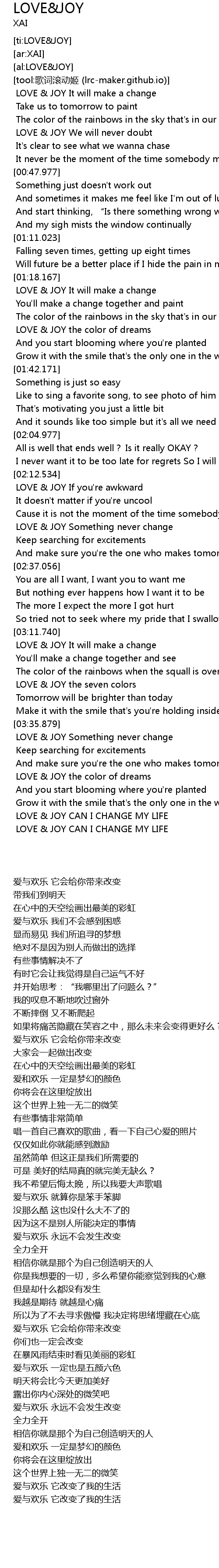 | [04:04.152] | LOVE JOY CAN I CHANGE MY LIFE |