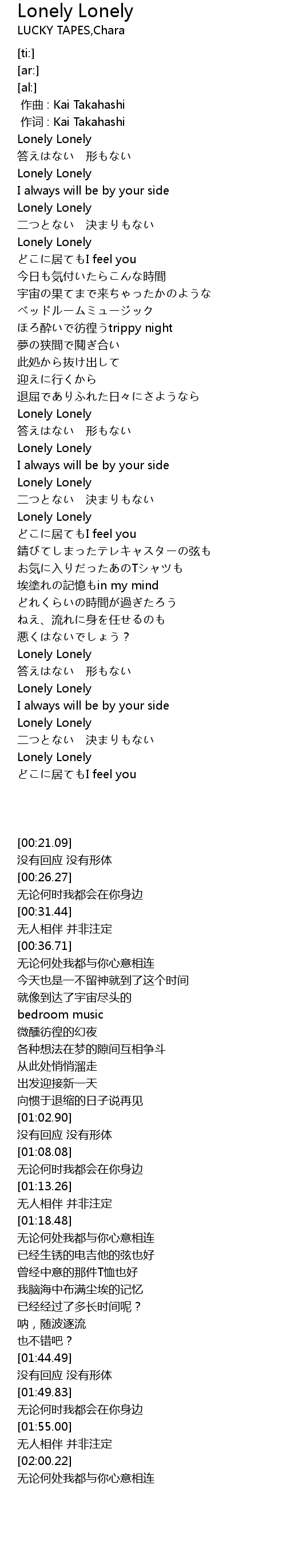 | [02:00.22] | Lonely Lonely |