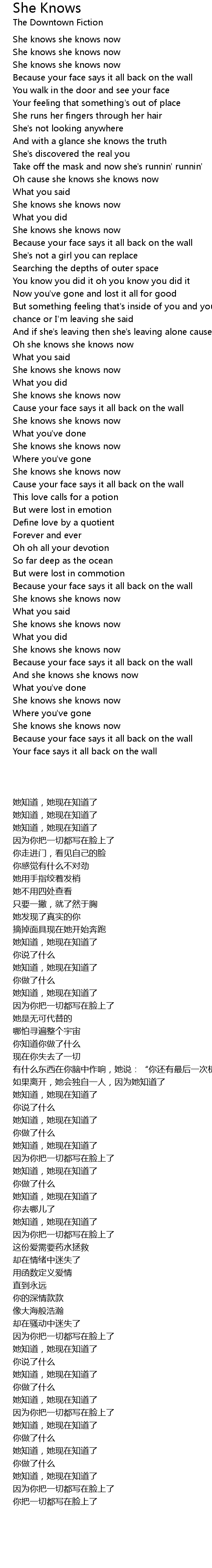 Oh cause she knows she knows now |
