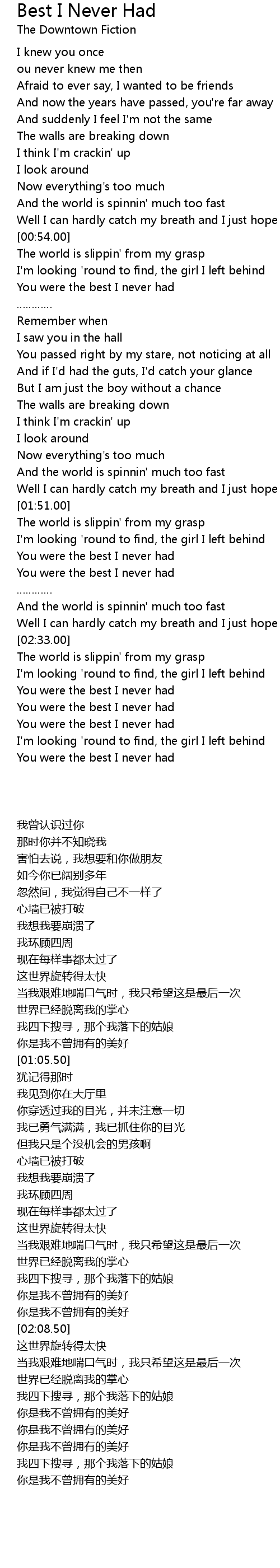 | [00:48.50] | Well I can hardly catch my breath and I just hope that this will last |