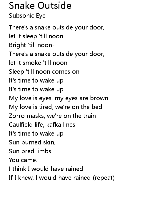 There's a snake outside your door, |