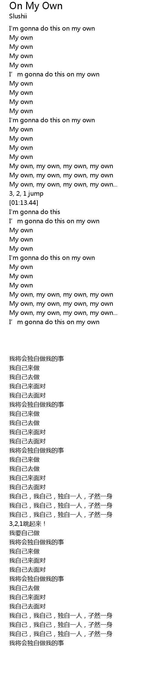 | [02:10.96] | My own, my own, my own, my own |
